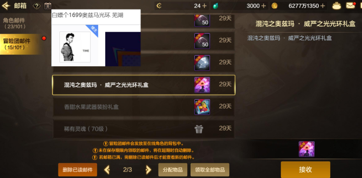 另外还有玩家竟然白嫖到了这个价值1699的奥兹玛光环,这个光环正常来说可是要花费1699才能得到的。没想到这次这名玩家却白嫖得到,而且这个光环还是直接发邮件的。
